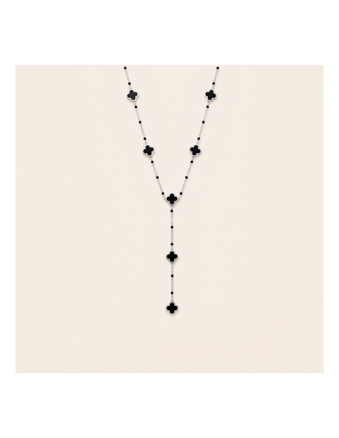 COLLIER CRAVATE TREFLES NOIRS